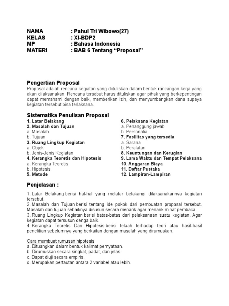 Tugas bahasa indonesia kelas 11 tentang proposal. Check spelling or type a new query. We did not find results for: Maybe you would like to learn more about one of these?