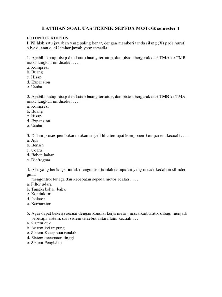 Contoh soal dan jawaban chasis sepeda motor guru paud.